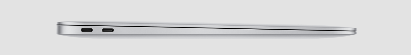 Thunderbolt 3 combines ultra-high bandwidth with the ultra-versatility of the USB-C industry standard to create one revved-up universal port — and MacBook Air has two of them. Thunderbolt 3 integrates data transfer, charging, and video output in a single connector, delivering up to 40Gb/s of throughput for twice the bandwidth of Thunderbolt 2. Existing devices are easily connected with a cable or adapter. And Thunderbolt 3 is reversible, so no matter how you plug it in, it’s always right side up.