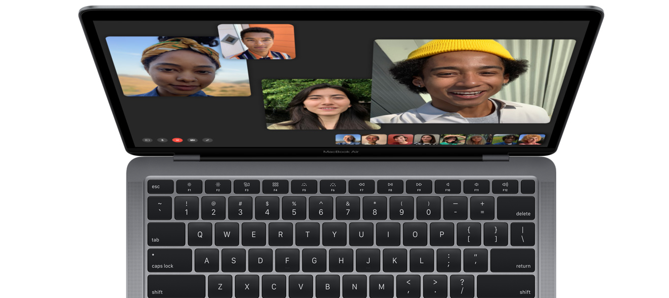 With the latest in processing and tuning techniques, MacBook Air sounds better than ever. Stereo speakers deliver twice the bass and 25 percent more volume.3 And wider stereo sound creates immersive audio when you’re listening to music or watching a movie. The FaceTime camera lets one — or many — of your friends and family members see you in high definition. And three microphones form an array that more accurately captures your voice for FaceTime calls, dictation, and talking to Siri.