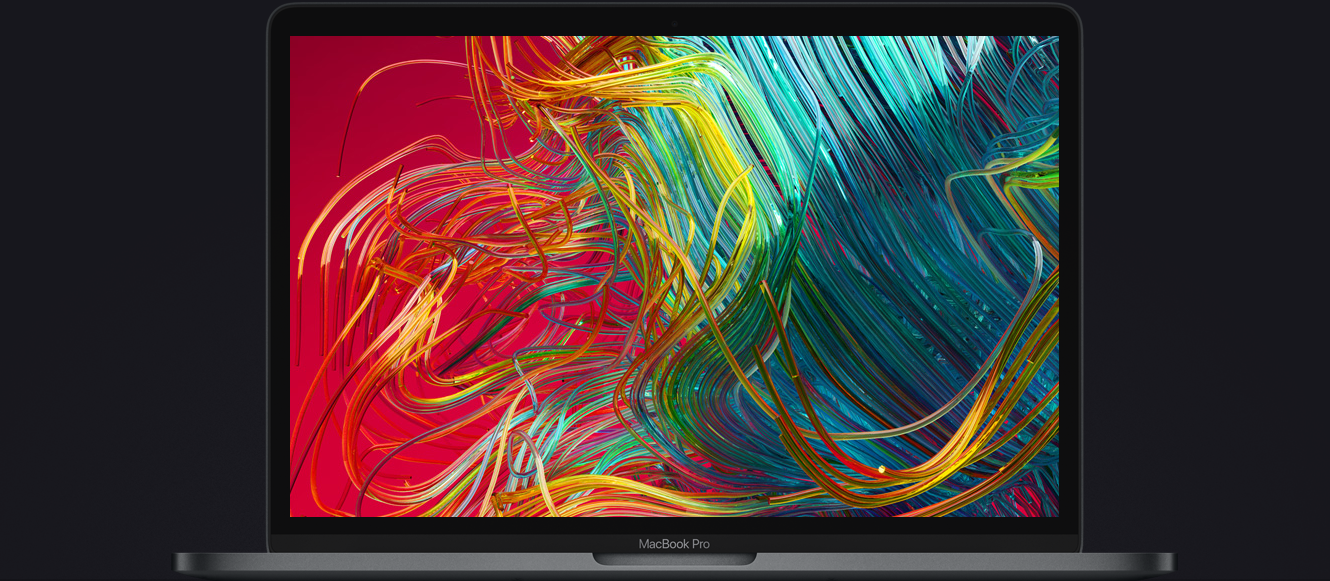 The Retina display on the 13-inch MacBook Pro features bright LED backlighting and a high contrast ratio, delivering deep blacks and bright whites. It supports P3 wide color for even more vibrant greens and reds than with sRGB. And every MacBook Pro features True Tone technology. The white balance automatically adjusts to match the color temperature of the light around you — for a more natural viewing experience. MacBook Pro has a dynamic soundstage that feels and sounds much wider than its physical dimensions imply. Movies are more immersive. Music more room-filling. And three built-in mics form directional beams that capture your voice more clearly for FaceTime calls and talking to Siri.