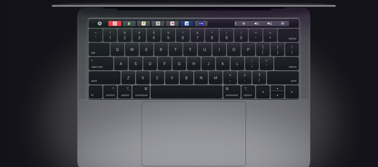 On every MacBook Pro, the Touch Bar replaces the function keys that have long occupied the top of your keyboard with something much more versatile and capable. It changes automatically based on what you’re doing to show you relevant tools that are intuitive to use — system controls like volume and brightness, interactive ways to adjust or browse through content, and intelligent typing features like emoji and predictive text, just to name a few.